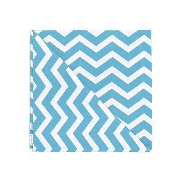 Чудовий столовий набір із двох квадратних серветок. Вироби біло-блакитного кольору із зигзагами. Серветки виконані зі 100% органічної бавовни.