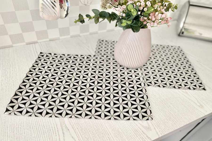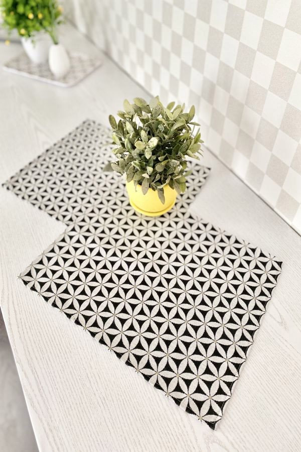 Серветка в стильній чорно-білій кольоровій гамі з красивим візерунком. Щільна якісна тканина прослужить вам довгий час, зберігши привабливий зовнішній вигляд і первісний колір.