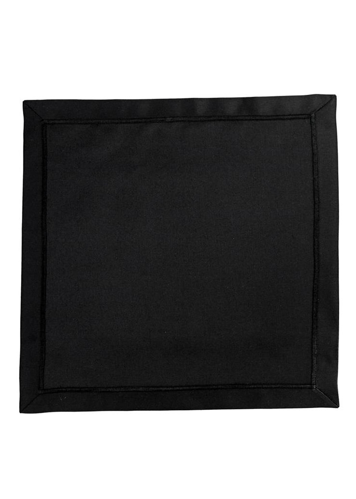 Однотонна серветка чорного кольору з декоративною вишитою рамкою. Серветка чудово доповнить сервірування столу. Якісна міцна тканина з поліестеру прослужить вам довгий час, зберігши привабливий зовнішній вигляд.