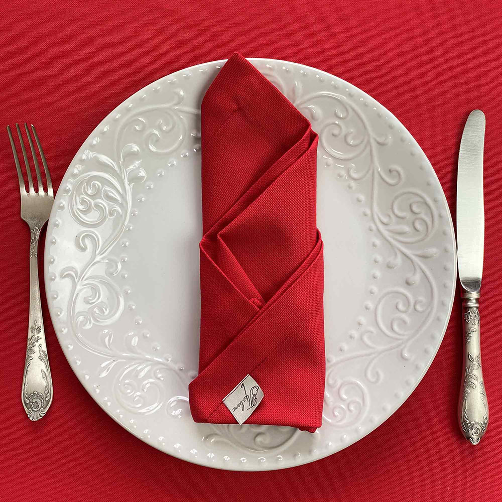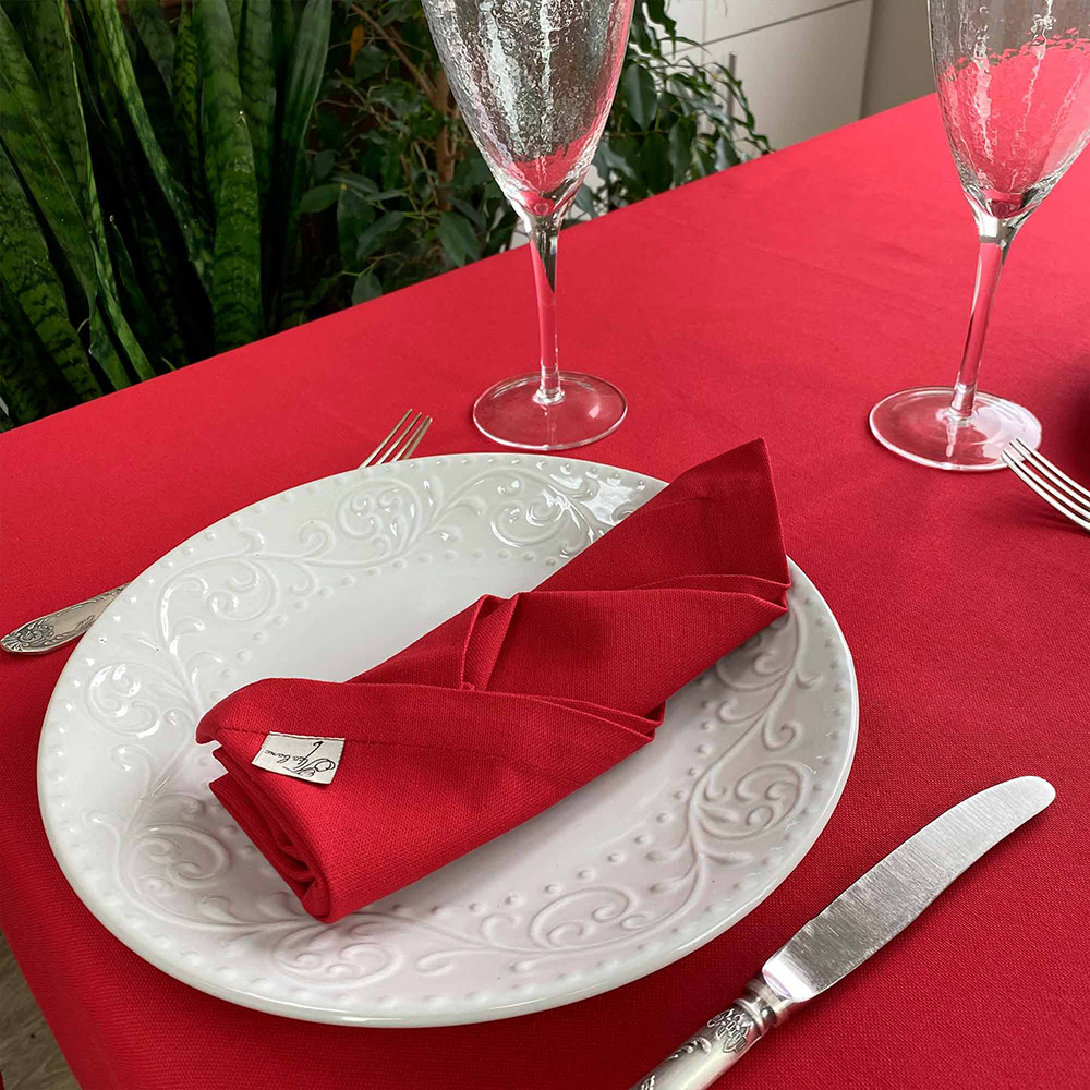 Однотонна червона серветка стане прикрасою святкового столу. Серветки практичні, виготовляються зі щільного якісного матеріалу на основі бавовни з додаванням поліестеру.