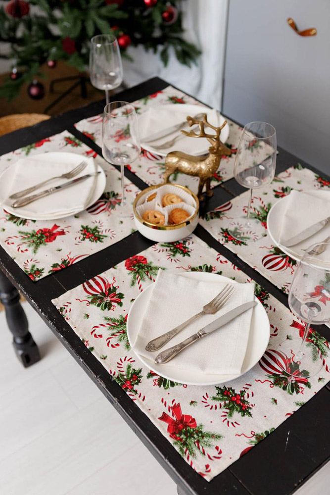 Столовий текстиль для Нового року та Різдва від ТМ Прованс (виробництво Україна). Вироби відрізняються красивим святковим дизайном і добротним пошиттям. Серветки практичні в експлуатації, міцні та зносостійкі, добре витримують часті прання, надовго зберігають привабливий зовнішній вигляд.