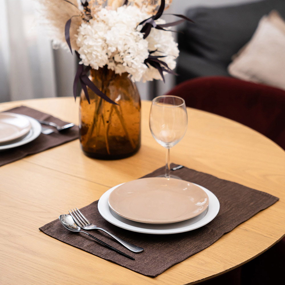 Серветка Jordan - стильне і практичне рішення для сервірування столу. Серветка виконана з міцної рогожки в однотонному дизайні коричневого кольору. Тканина щільна, з виразною текстурою, стійка до зносу, практична і довговічна в експлуатації, добре витримує часте прання, ідеально підходить для щоденного використання.