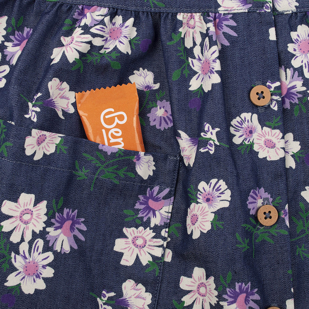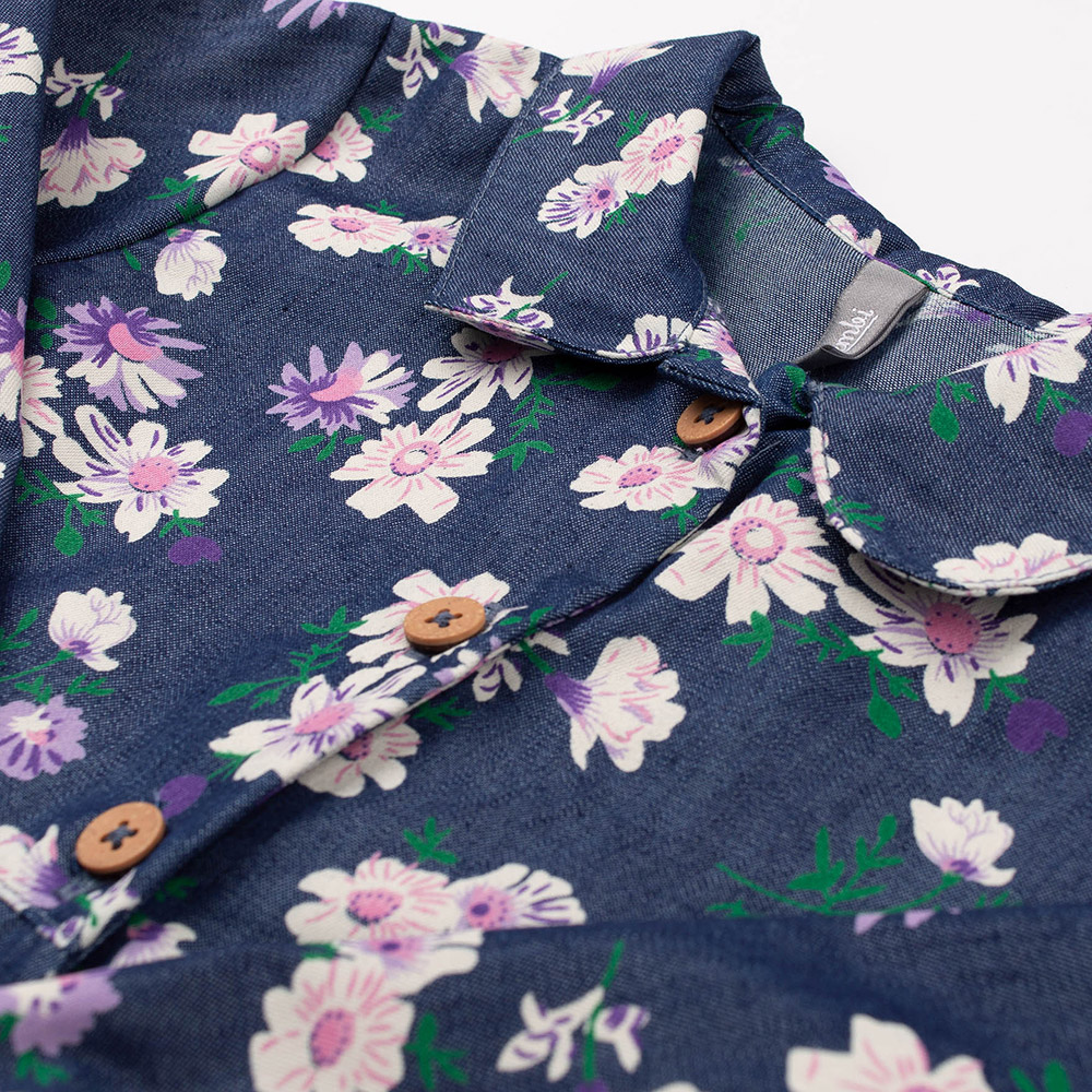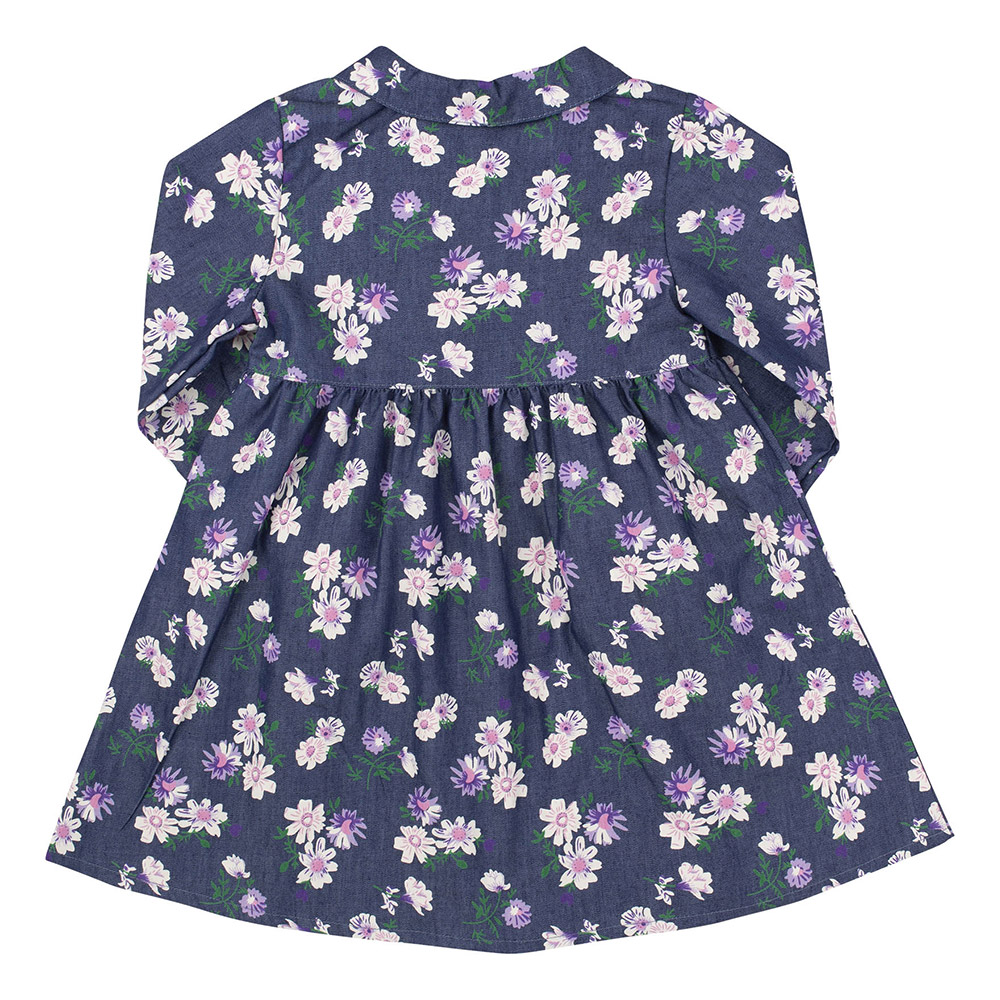 Сукня синього кольору з красивим квітковим принтом. Модель з комірцем, двома накладними кишенями, рукава призібрані на гумку, спереду по всій довжині - центральна застібка на ґудзики. Сукня виконана з легкої джинсової тканини. Матеріал з натуральної бавовни м'який і приємний на дотик, забезпечує комфорт, практичний і довговічний в експлуатації.