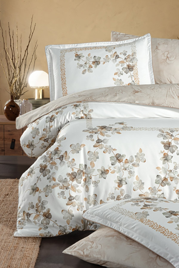 Розкішна постільна білизна в біло-бежевому кольорі з красивим рослинним принтом. Поєднання елегантності та комфорту. Комплект стане родзинкою спальні, наповнить інтер'єр затишком і гармонією. Виготовлений із преміального сатину на основі 100% єгипетської бавовни, комплект має неймовірну м'якість і високу міцність. Високоякісний сатиновий матеріал створює ідеальні умови для комфортного сну. Єгипетська бавовна вирізняється довгими волокнами, що робить матеріал ніжним і шовковистим на дотик, водночас зносостійким і довговічним в експлуатації. Цей комплект стане гармонійним доповненням до інтер'єру спальні, надаючи їй витонченості та затишку. Ідеальний вибір для тих, хто цінує розкіш і якість у кожній деталі.