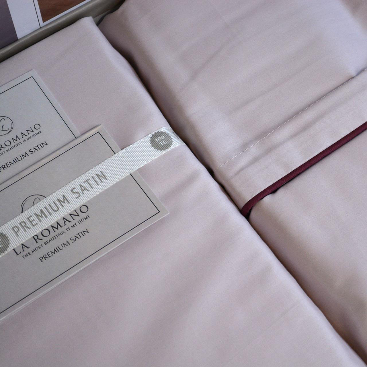 Постільна білизна Lucca Violet сатин Преміум 300TC La Romano - це вишукана однотонна постільна білизна світло-бузкового кольору з красивим кантом. Комплект стане королівським акцентом в інтер'єрі, зробить кімнату затишною і неповторною. М'яка сатинова тканина зі щільністю 300ТС забезпечить максимальний комфорт під час сну і довговічність постільної білизни.