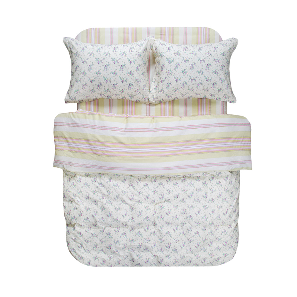 Якісна сатинова постільна білизна з красивим принтом із квітами та смужками. Комплект зробить спальню затишною і неповторною, чудово доповнить інтер'єр. Натуральна бавовняна тканина з ніжною і гладкою фактурою забезпечить максимально комфортний і приємний сон.