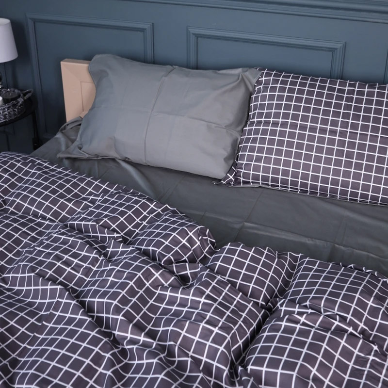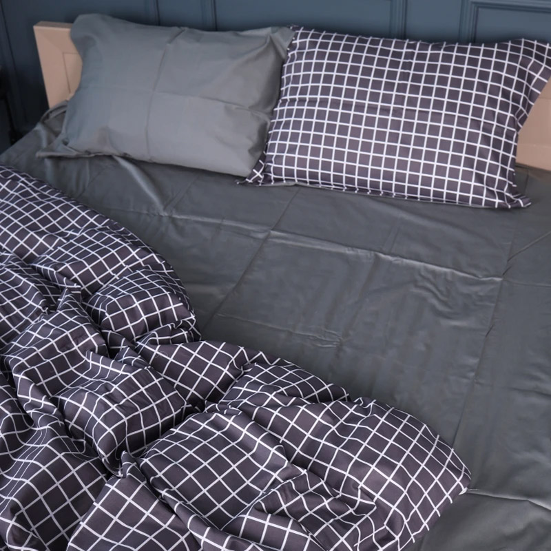 Сатиновий комплект сірих відтінків із модним принтом у клітинку. Постільна білизна чудово доповнить сучасний інтер'єр, стане стильним акцентом у спальні. Якісна тканина з натуральної бавовни ніжна і м'яка на дотик, з гладкою фактурою, забезпечує максимально комфортний і приємний сон.