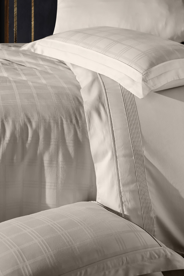 Стильний однотонний комплект бежевого кольору із рельєфними жаккардовими клітинками. Постільна білизна стане універсальним рішенням для будь-якого інтер'єру. Постільна білизна виготовлена з м'якого високоякісного сатину класу люкс. Натуральна бавовняна тканина подарує максимально комфортний і приємний сон.