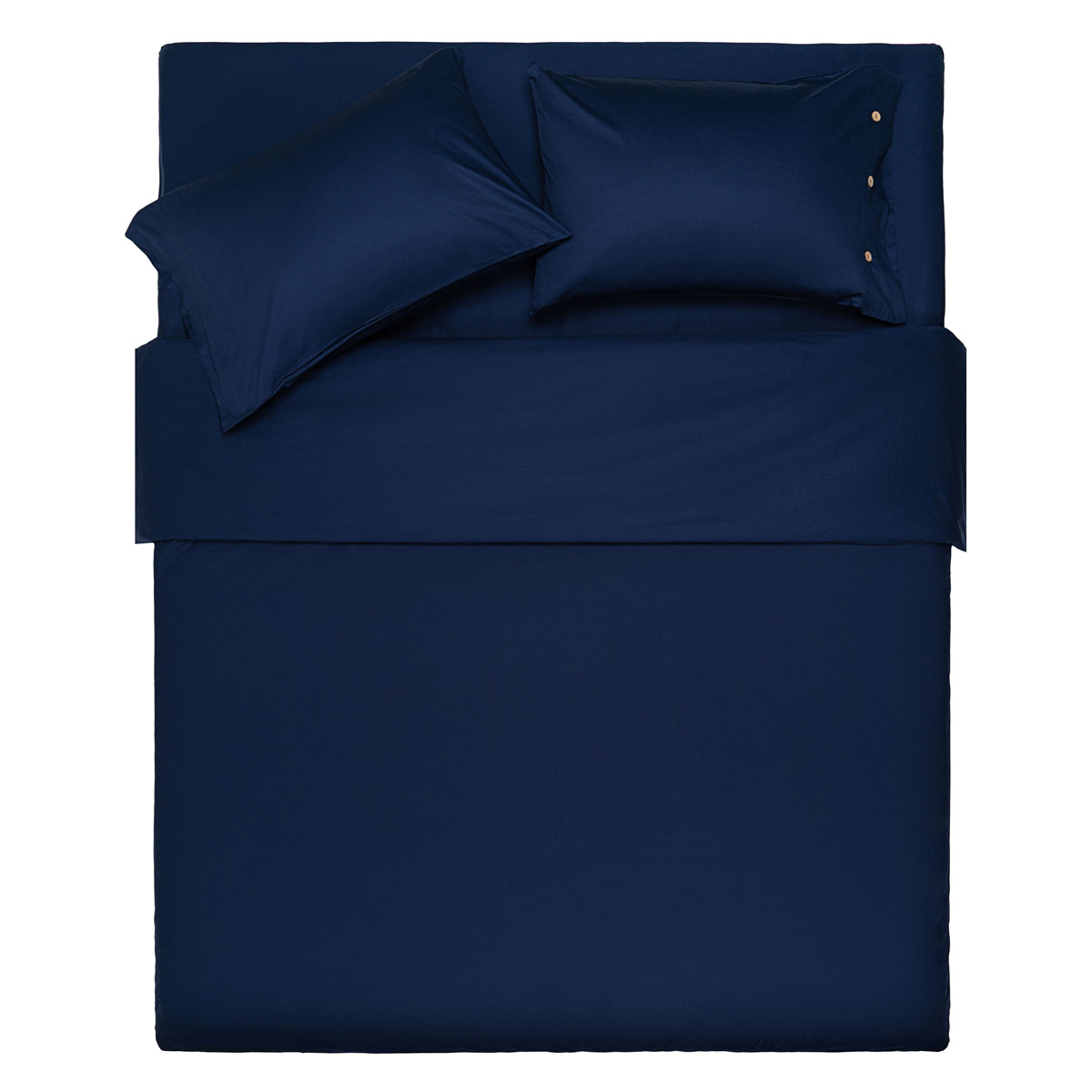 Наволочка виготовлена з високоякісного бавовняного сатину для максимального комфорту та довговічності. Тканина зберігає форму і не втрачає якість після прання. Гіпоалергенні властивості матеріалу забезпечують хорошу повітропроникність і вбирання вологи, забезпечуючи спокійний і комфортний сон. Синій колір додасть інтер'єру спальні стиль і елегантність.