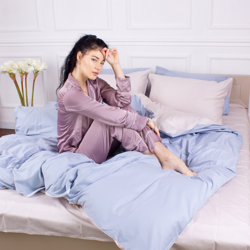 Сатинова підковдра ніжних відтінків у модному двоколірному дизайні. Одна сторона виробу – блакитного кольору, а інша – кремового. М'яка та шовковиста тканина з натуральної бавовни забезпечить максимально комфортний та приємний сон. Підковдра оснащена зручною застібкою-блискавкою.