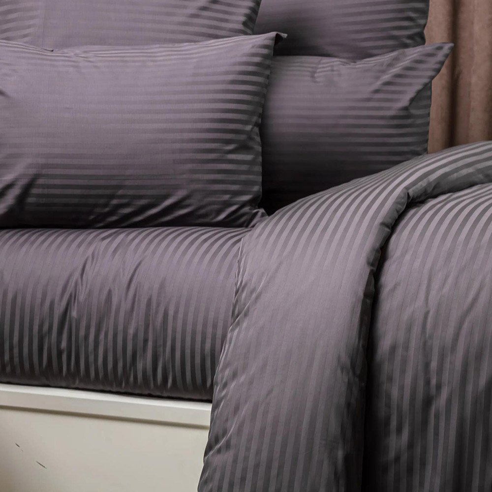 Підковдра з преміального страйп-сатину графітового кольору з красивими жакардовими смужками. Якісна тканина з натуральної бавовни ніжна і м'яка на дотик, вирізняється гарною повітропроникністю, міцна і зносостійка в експлуатації, відмінно зберігає колір і форму після прання. Підковдра представлена в зручній і стильній упаковці (бавовняний мішечок) - практичне рішення для зберігання і транспортування.