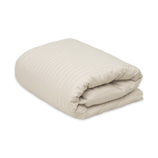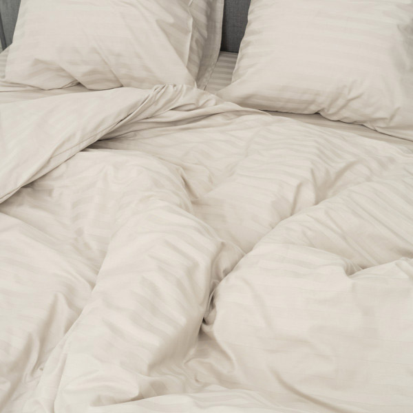 Сатинова однотонна підковдра бежевого кольору з красивими жакардовими смужками. Підковдра стане стильним акцентом у спальні, чудово доповнить сучасний інтер'єр. Ніжна шовковиста тканина з натуральної бавовни подарує вам відчуття комфорту та затишку під час сну.