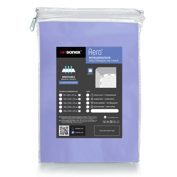 Простирадло на гумці сатинова Aero Gentle Lavender Sonex. Функціональне простирадло на гумці допоможе Вам спати з комфортом у будь-яку пору року. Спеціальні вставки Air-Tex забезпечують вільну циркуляцію повітря та відводять зайву вологу. Преміум сатин має міцну структуру та неперевершену шовковисту м'якість, він приємний на дотик і ніжний для шкіри.