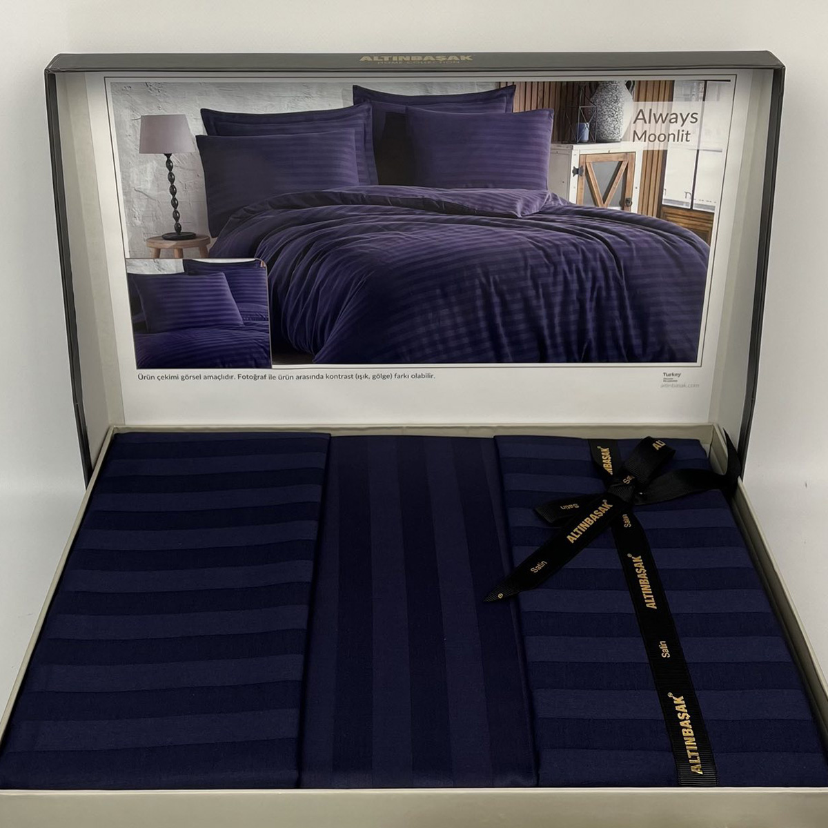 Постільна білизна Altinbasak Moonlit страйп-сатин темно-синій