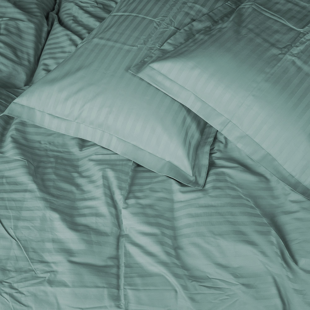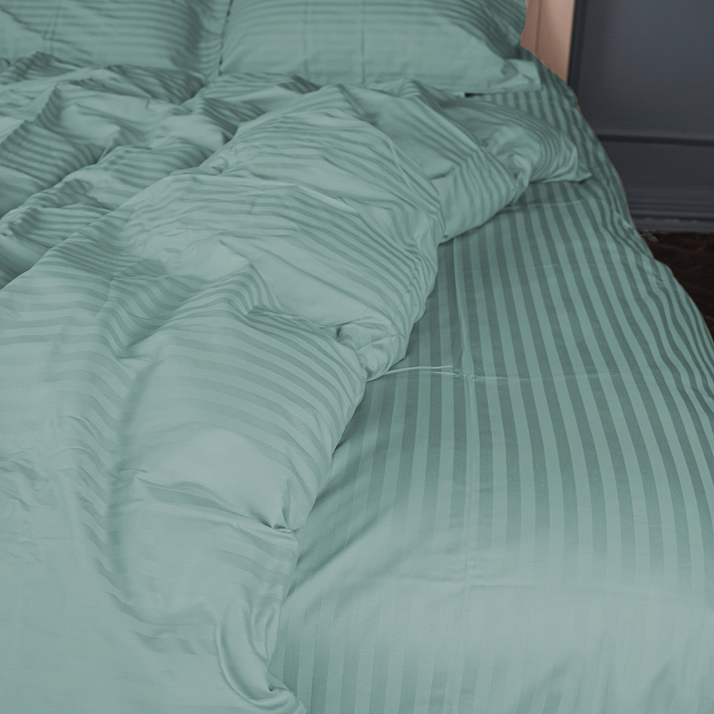 Постільна білизна зі страйп-сатину в елегантному однотонному дизайні бірюзового кольору - ідеальний вибір для стильного та сучасного інтер'єру.