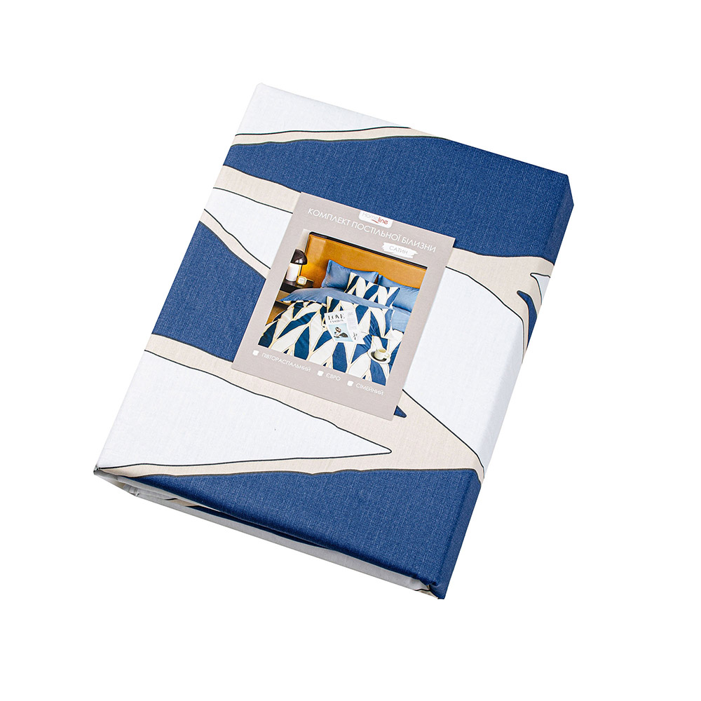 Сатиновий комплект у синій колірній гамі з красивим абстрактним принтом. Постільна білизна стане стильним і красивим акцентом у спальні, чудово доповнить сучасний інтер'єр. М'яка якісна тканина з натуральної бавовни забезпечить максимально комфортний і приємний сон.