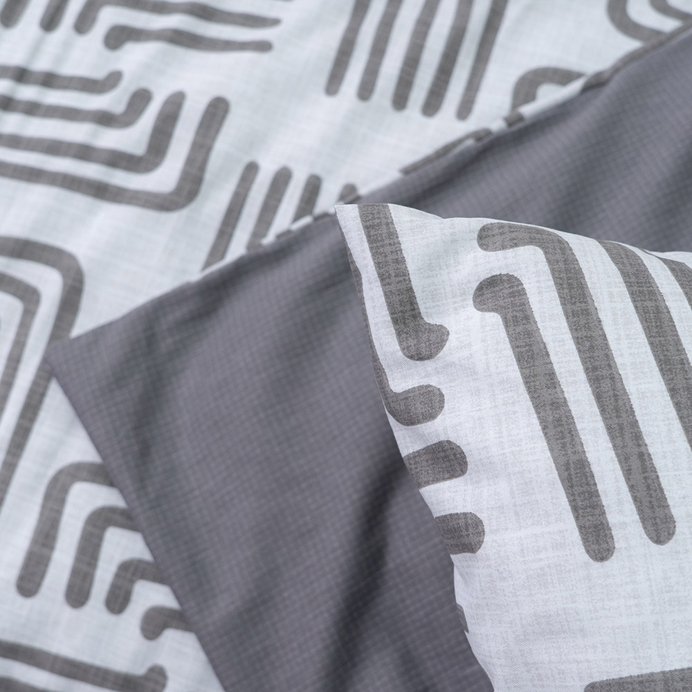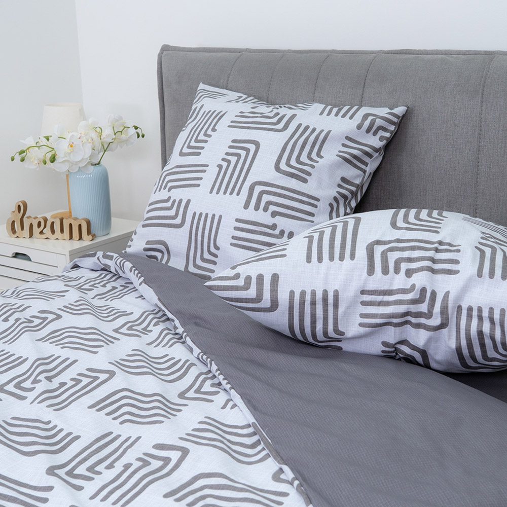 Сатинова постільна білизна сірих відтінків з абстрактним принтом. Комплект стане стильним акцентом у спальні, чудово доповнить сучасний інтер'єр. М'яка і ніжна тканина з натуральної бавовни подарує максимально комфортний і приємний сон.