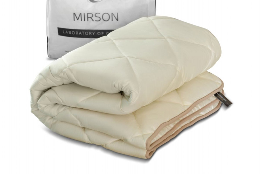 Тепла зимова ковдра з наповнювачем із шовку та антиалергенного шовкового волокна. Рослинний шовк капок має прекрасні терморегулюючі властивості, не парить, не викликає алергії, легкий і повітряний. Наповнювач рівномірно розподілений і простібаний по всій ковдрі. Тканина верху – натуральний бавовняний матеріал кремового кольору. Тканина м'яка і приємна на дотик, чудово пропускає повітря.