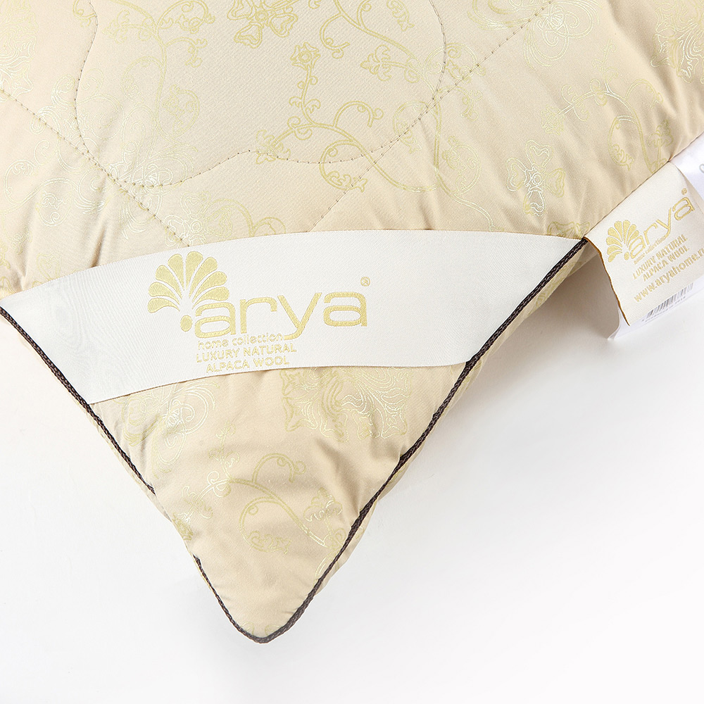 Подушка з вовни альпака Arya Luxury Alpaca в бавовні представлена в двох розмірах з наповнювачем з натуральної вовни альпаки. Шерсть цієї тварини поєднує в собі цілющі властивості вовни верблюда і м'якість шерсті лам. Шерсть альпаки в три рази міцніше і сім разів тепліше вовни вівці, а також не містить алергічних речовин в складі. Шерсть альпака не збивається, не вбирає запахи, стійка до забруднення і не вимагає особливого догляду. Чохол подушки виконаний з ніжного шовковистого матеріалу з вишуканим жакардовим візерунком і кантом.