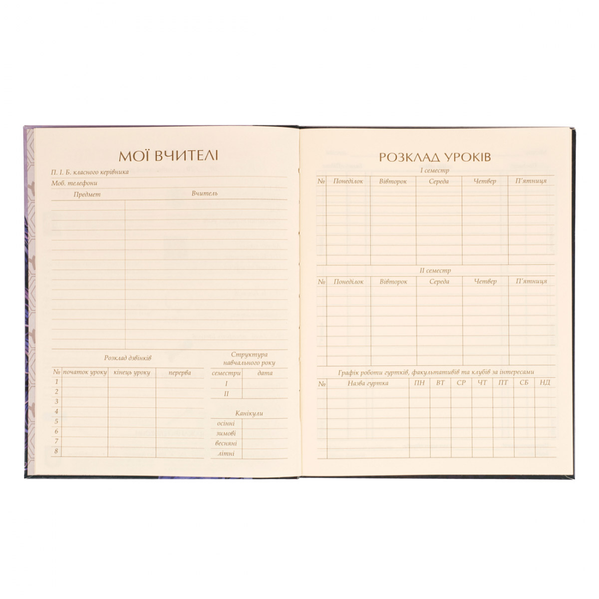 - Інформаційний блок - дані учня, вчителів та школи, розклад уроків та дзвінків, табель успішності