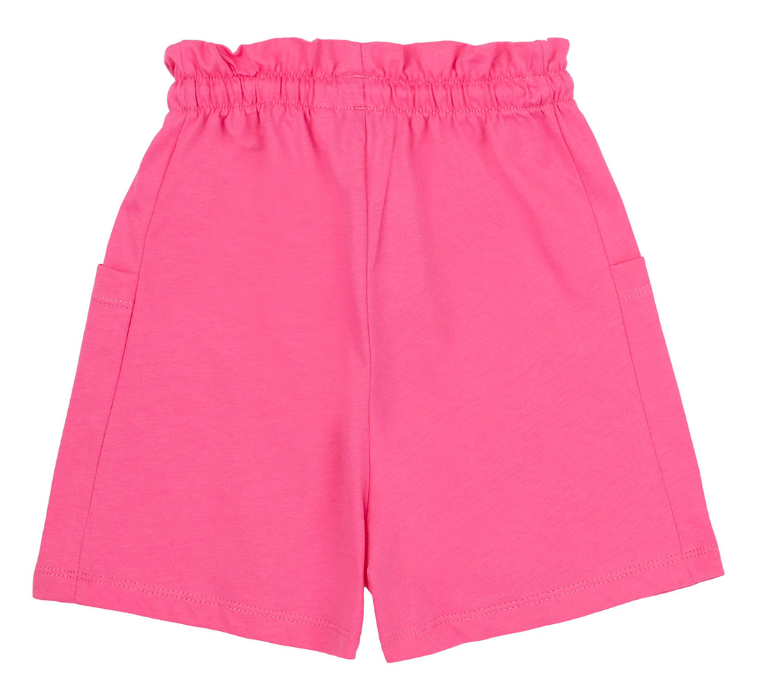 Однотонні шорти рожевого кольору. Модель підійде для дівчинки. Шорти із двома бічними кишенями; на поясі - оборка, зручна гумка та шнур. Шорти виготовлені з тканини супрем. Бавовняний матеріал легкий, м'який і приємний на дотик, добре пропускає повітря, ідеально підходить для дитячої шкіри.