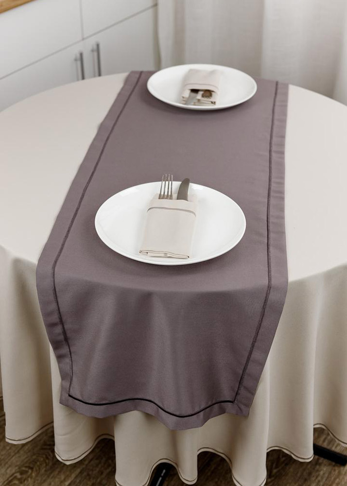 Столовий текстиль ТМ Прованс (виробництво Україна). Вироби відрізняються однотонним сучасним дизайном та добротним пошиттям, виготовляються з якісних тканин. Доріжки з поліестеру гладкі на дотик, практичні в експлуатації, міцні та зносостійкі, довговічні, добре витримують часті прання.