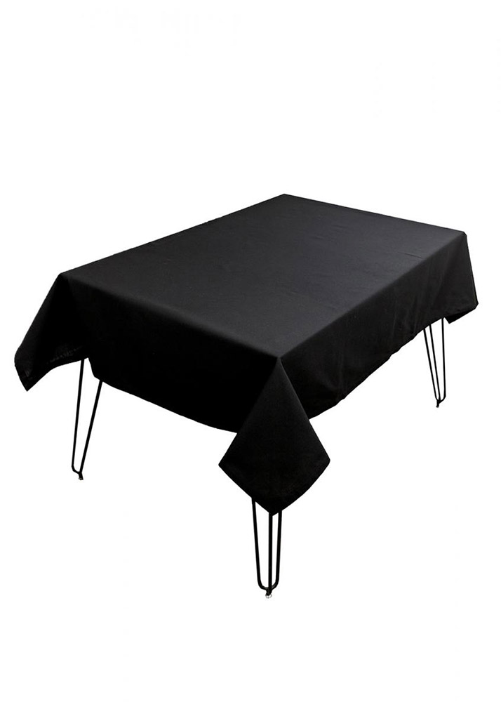 Однотонна скатертина чорного кольору з декоративною вишитою рамочкою по периметру. Скатертина стане універсальним і стильним рішенням для будь-якого інтер'єру, а також відмінною основою для сервірування столу. Якісна міцна тканина з поліестеру прослужить вам довгий час, зберігши привабливий зовнішній вигляд.