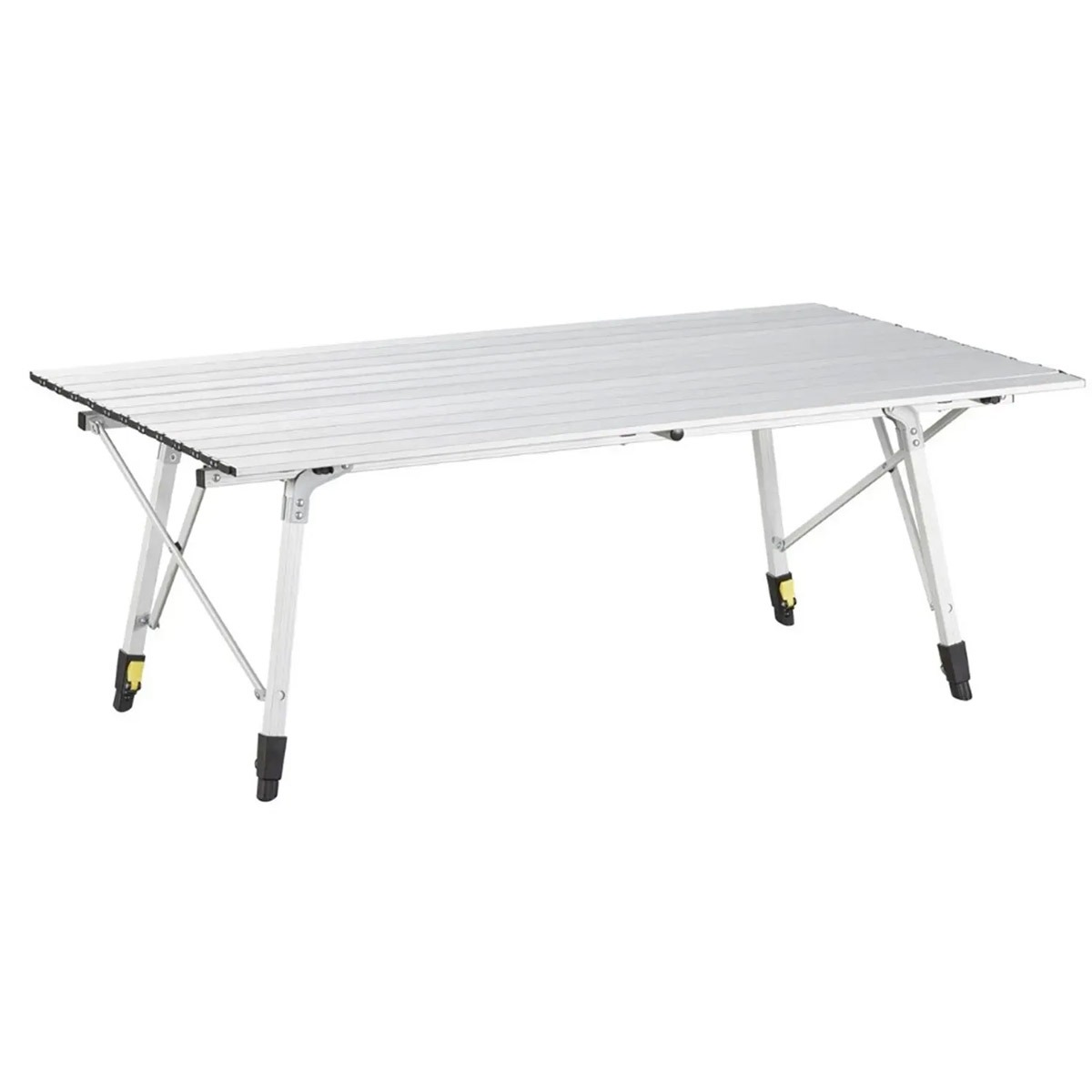 Універсальне рішення для кемпінгу та відпочинку, яке виділяється можливістю плавного індивідуального регулювання кожної ніжки. Завдяки цьому стільницю можна встановити горизонтально навіть на нерівній поверхні з перепадом до 14 см, а висоту підібрати під різні крісла. Простора алюмінієва стільниця розрахована на комфортне розміщення до 6 осіб, стійка до навантажень, легко чиститься та не затримує мікроби. У складеному вигляді стіл компактний і зручно транспортується у чохлі.