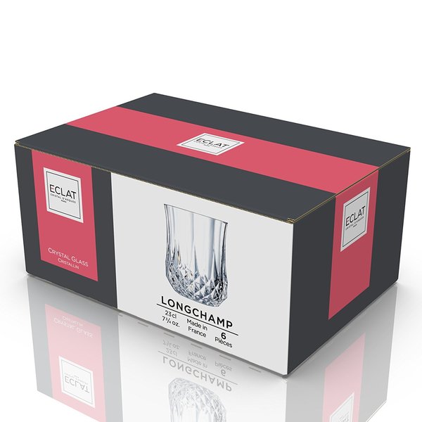 Набір склянок Eclat Longchamp 6х230 мл L9758 призначений для повсякденного використання і урочистого заходу. Склянки має практичну форму, широке горло і чудовий дизайн. Набір красивих ємностей стане прекрасним варіантом для подачі безалкогольних напоїв і вишуканою сервірування столу. Виготовлені з високоякісного прозорого кришталевого скла. Колекції французького посуду Eclat гарантують блиск і свято, завдяки розробці нового кришталевого скла з видатними характеристиками. Брендовий продукція поєднує дизайн, інновації та якість для всіх, вона має надійний, міцний, якісний і культовий дизайн. Французька елегантність на кожен день. Кришталеві вироби від Eclat можуть стати чудовим подарунком на будь-яке свято, а також додати вишуканості і привабливості в урочисті моменти прийому гостей.