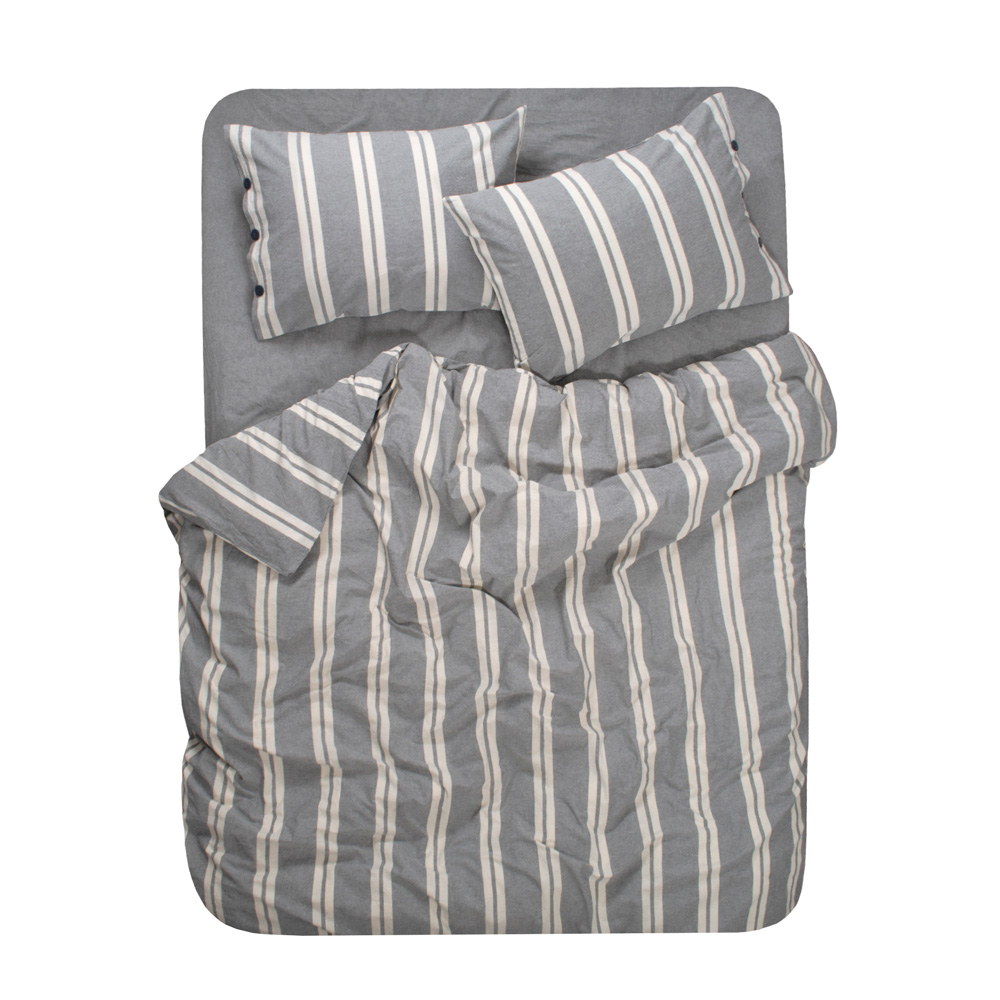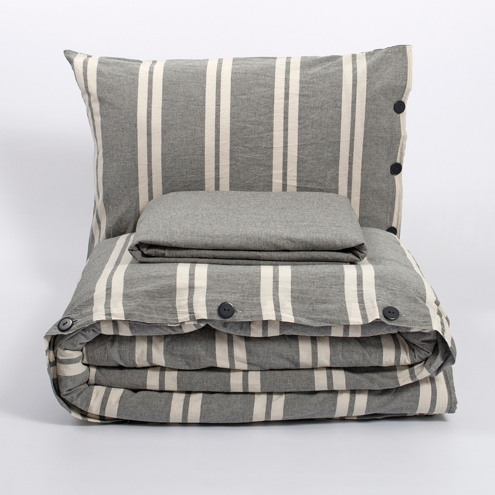 Постільна білизна Washed cotton Kanden Lotus Home. Високоякісна постільна білизна з натуральної бавовняної тканини з красивим смугастим принтом. Матеріал Washed Cotton м'який на дотик, щільний, із злегка жатой фактурою, проводиться з вареного бавовни. Комплект забезпечить вам комфортний і приємний сон, стане гарним акцентом в інтер'єрі. Наволочки мають застібку на гудзиках.