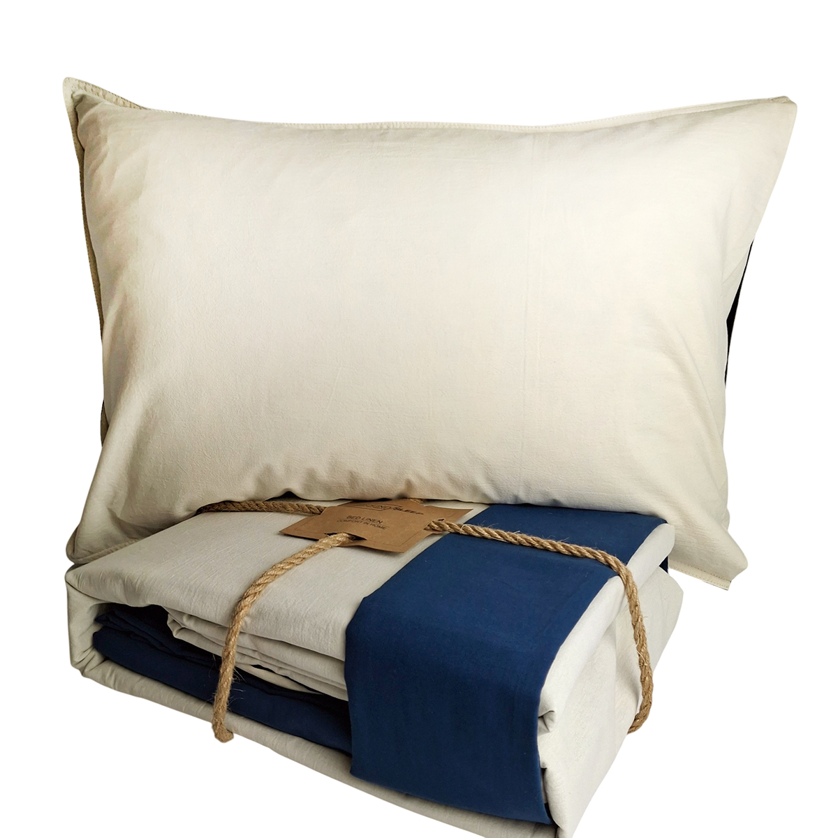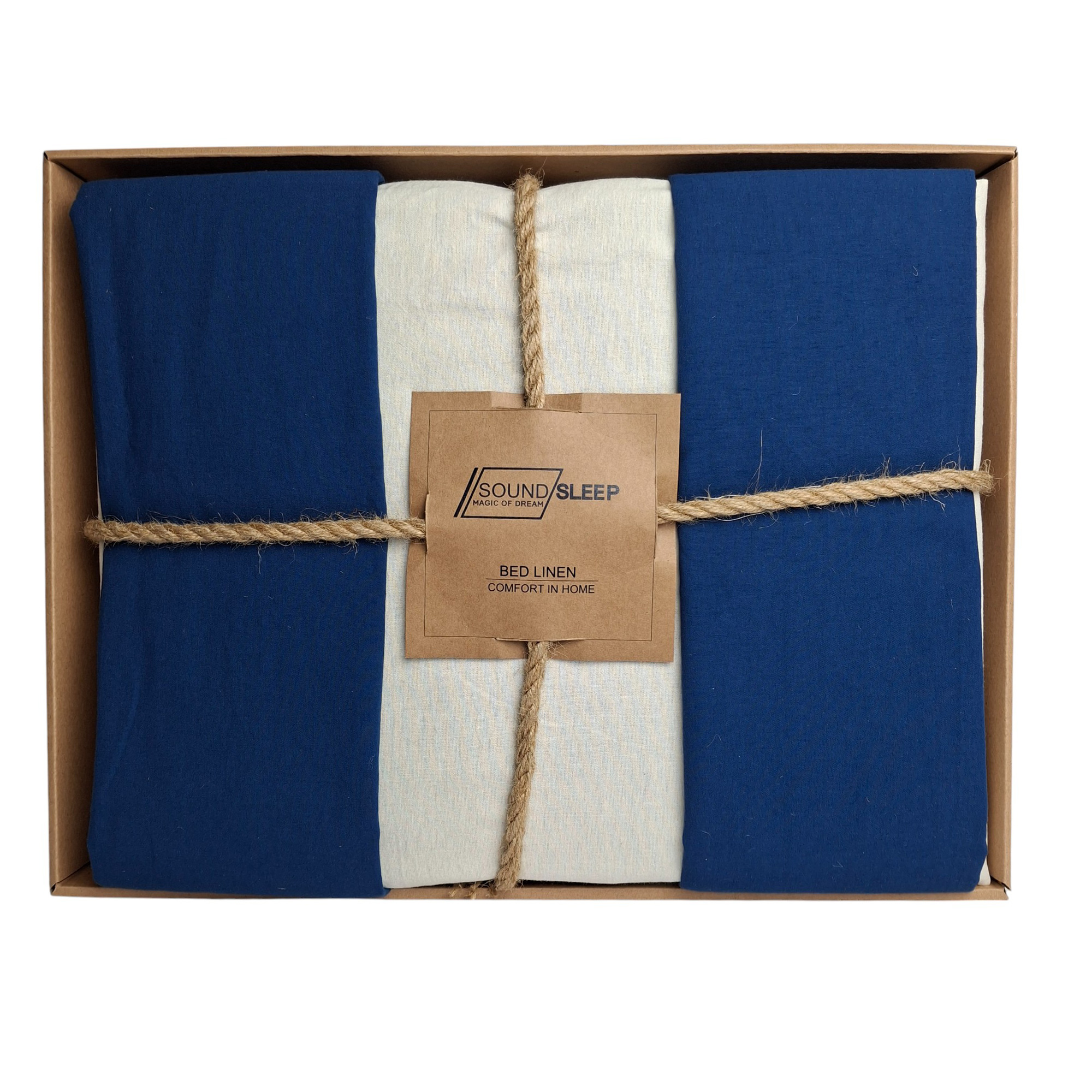 Комплект постільної білизни SoundSleep Stonewash Doble Dark Blue Milk синьо-молочний