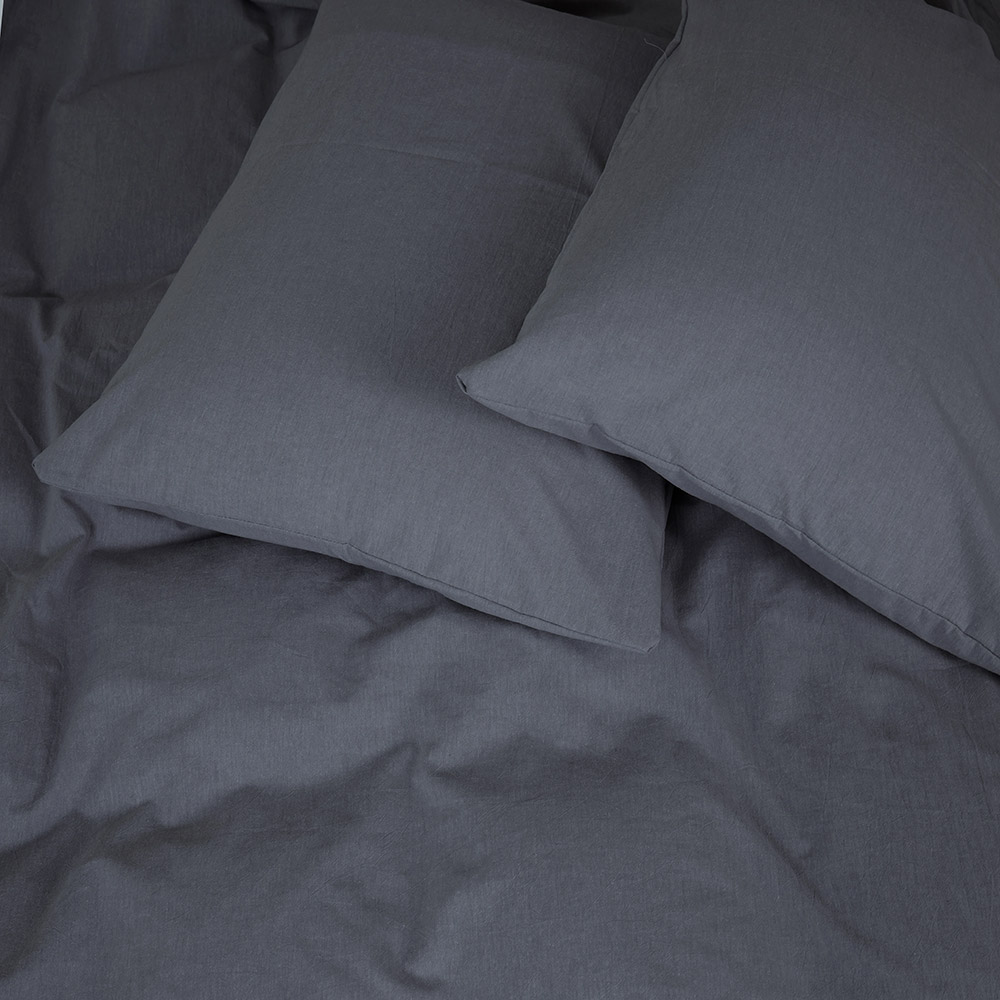 Однотонне простирадло темно-сірого кольору, виконане з тканини Washed Cotton. Простирадло м'яке, приємне на дотик, комфортне, прекрасно пропускає повітря. Washed Cotton (варена бавовна) - це 100% натуральна тканина, яка набуває неймовірної м'якості завдяки спеціальній технології обробки гарячою водою. Матеріал стає дуже приємним, зі злегка м'ятою фактурою, стійким до усадки.