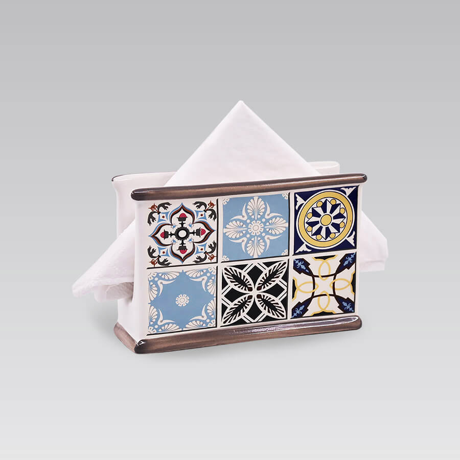 Чудова серветниця з красивим мозаїчним візерунком. Серветниця виготовлена з якісної кераміки, поєднує в собі функціональність, стиль і міцність, стане красивим акцентом на святковому столі.