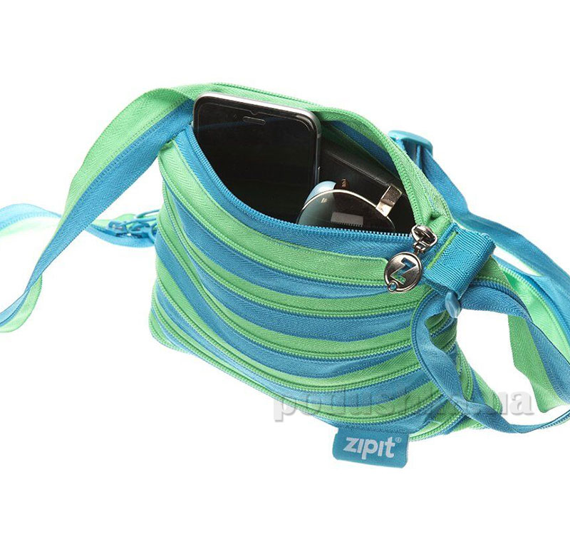 Сумка Zipit Medium Turquise Blue & Spring Green ZBD-15 бірюзовий - вишукана сумочка, виконана з комбінації міцних блискавок з оригінальним колірним рішенням. Модель має містке внутрішній простір і довгий ремінь через плече. Довжина ременя легко регулюється за допомогою пластикового карабіна.