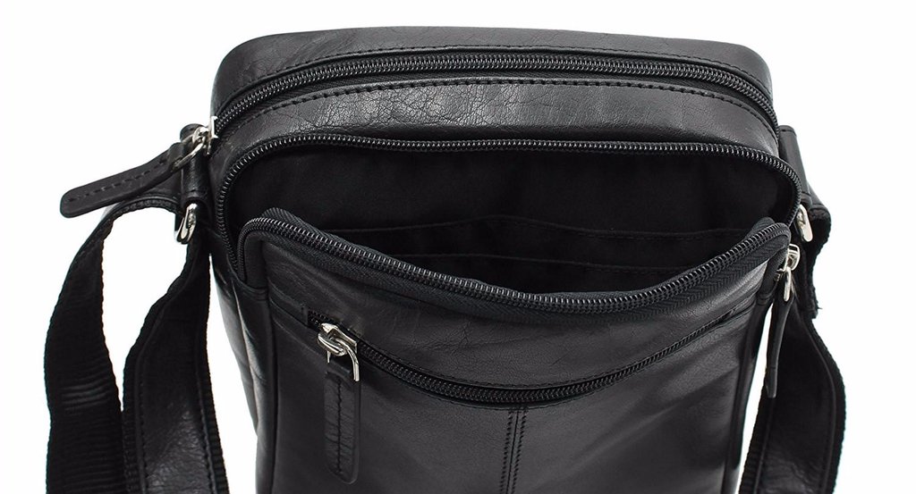 Чоловіча шкіряна сумка-месенджер Visconti S-8 black - комфортний аксесуар вертикальної форми, виконаний з м'якої високоякісної телячої шкіри. Така сумка стане незамінна для ділових чоловіків і для повсякденного використання. Дуже добре підходить для носіння гаманця, телефону, планшета, документів та інших корисних вкладень.