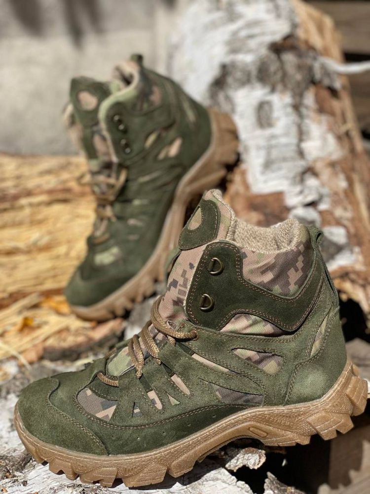 Шкіряні берці з конопляною тканиною зимові Ukono зелений, піксель