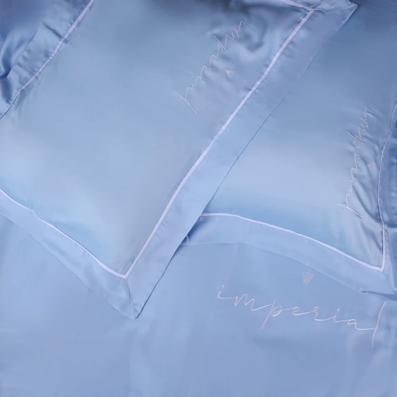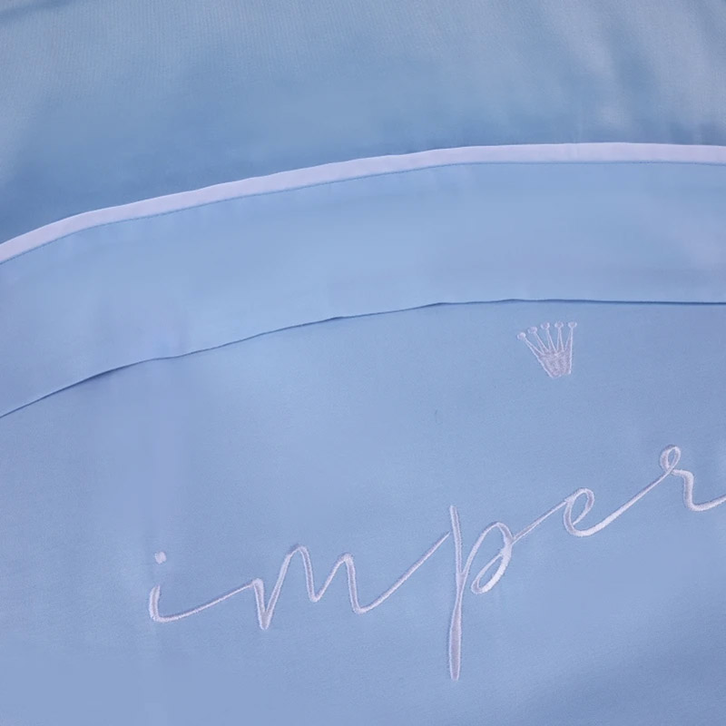 Ексклюзивна постільна білизна преміум-класу з високоякісного італійського тенсела. Тканина інноваційна, виробляється з целюлози евкаліптових дерев, вирізняється надзвичайною м'якістю і шовковистою текстурою. Тенцель добре дихає, ефективно поглинає вологу і регулює температуру, забезпечуючи комфорт у будь-яку пору року. Крім того, ця тканина гіпоалергенна і екологічно чиста, що робить її ідеальним вибором для постільної білизни. Розкішний комплект блакитного кольору, декорований вишивкою (корона, напис Imperial) і контрастним кантом. Комплект стане королівським акцентом у спальні. М'яка і шовковиста тканина забезпечить максимально комфортний і приємний сон.