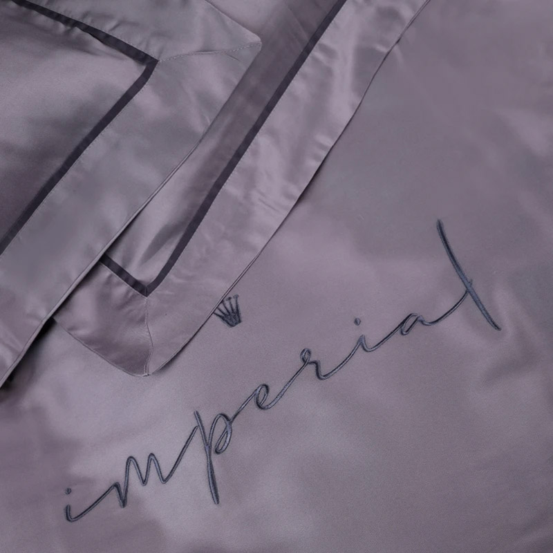 Ексклюзивна постільна білизна преміум-класу з високоякісного італійського тенсела. Тканина інноваційна, виробляється з целюлози евкаліптових дерев, вирізняється надзвичайною м'якістю і шовковистою текстурою. Тенцель добре дихає, ефективно поглинає вологу і регулює температуру, забезпечуючи комфорт у будь-яку пору року. Крім того, ця тканина гіпоалергенна і екологічно чиста, що робить її ідеальним вибором для постільної білизни. Розкішний комплект сірого кольору, декорований вишивкою (корона, напис Imperial) і контрастним кантом. Комплект стане королівським акцентом у спальні. М'яка і шовковиста тканина забезпечить максимально комфортний і приємний сон.