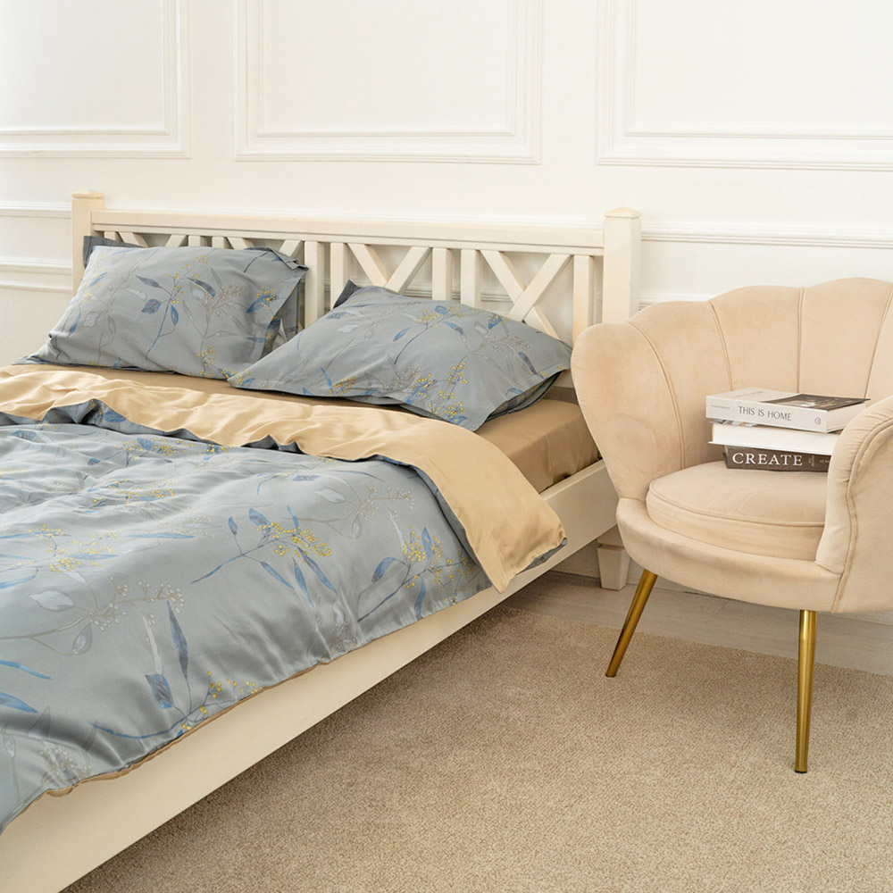 Чудова постільна білизна в спокійній сіро-бежевій гамі з красивим квітковим принтом. Комплект виконаний з тенсела - унікального матеріалу, створеного з целюлози евкаліптових дерев. Ідеальний вибір для тих, хто цінує преміальну якість, екологічність і натуральність. Тенсел - це сучасна технологічна тканина, яка поєднує в собі шовковисту ніжність, високу міцність і природні антибактеріальні властивості.