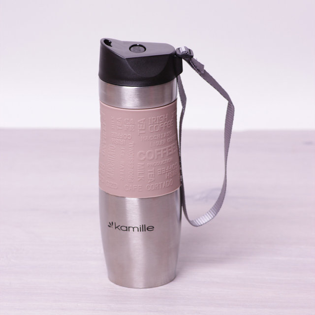 Термокружка Kamille 480мл з TPR-вставкою і ремінцем 2051