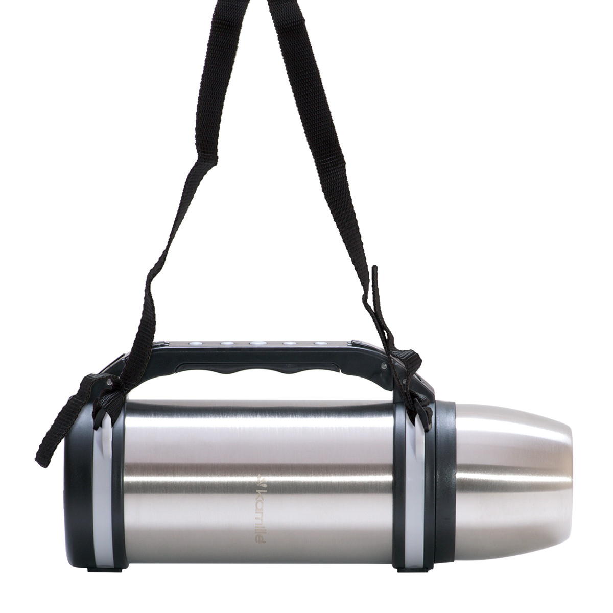 Термос Kamille 1000мл 2090 з нержавіючої сталі з ручкою та ремінцем має високу якість, надійність, компактні розміри та естетичний дизайн. Такий термос стане незамінним у машині, на відпочинку чи подорожі. особливості: