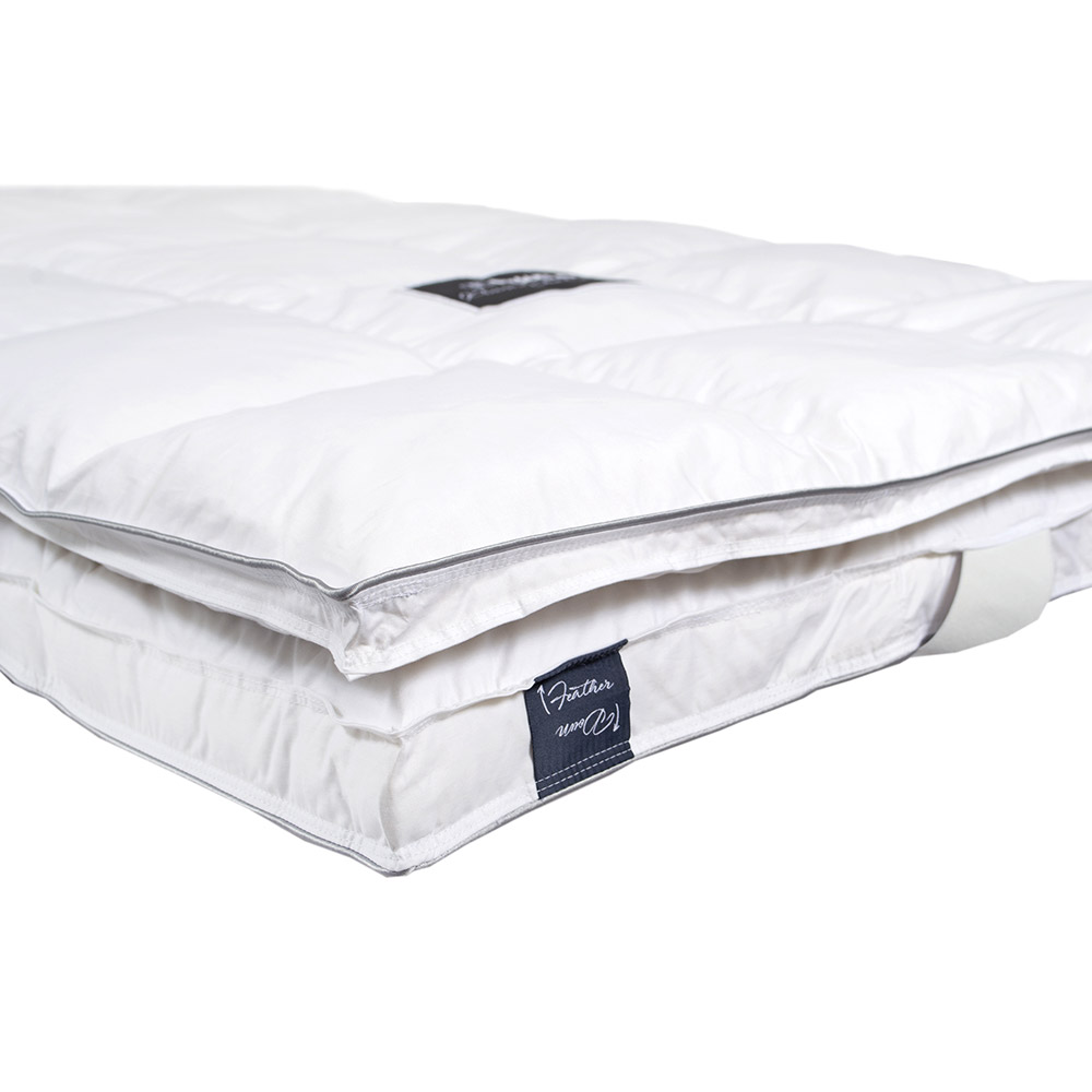 Унікальною особливістю пухових перин Piume Pro Comfort є спеціальний дизайн - конструкція з двох частин, що з'єднуються блискавкою. Завдяки трансформувальній здатності виробу ви можете поміняти сторони перини з м'якшої на жорсткішу, просто перевернувши її, у такий спосіб обравши більш пружну поверхню з наповнювачем пух 30%, перо 70% або більш повітряну з наповнювачем 70% пух, 30% перо.