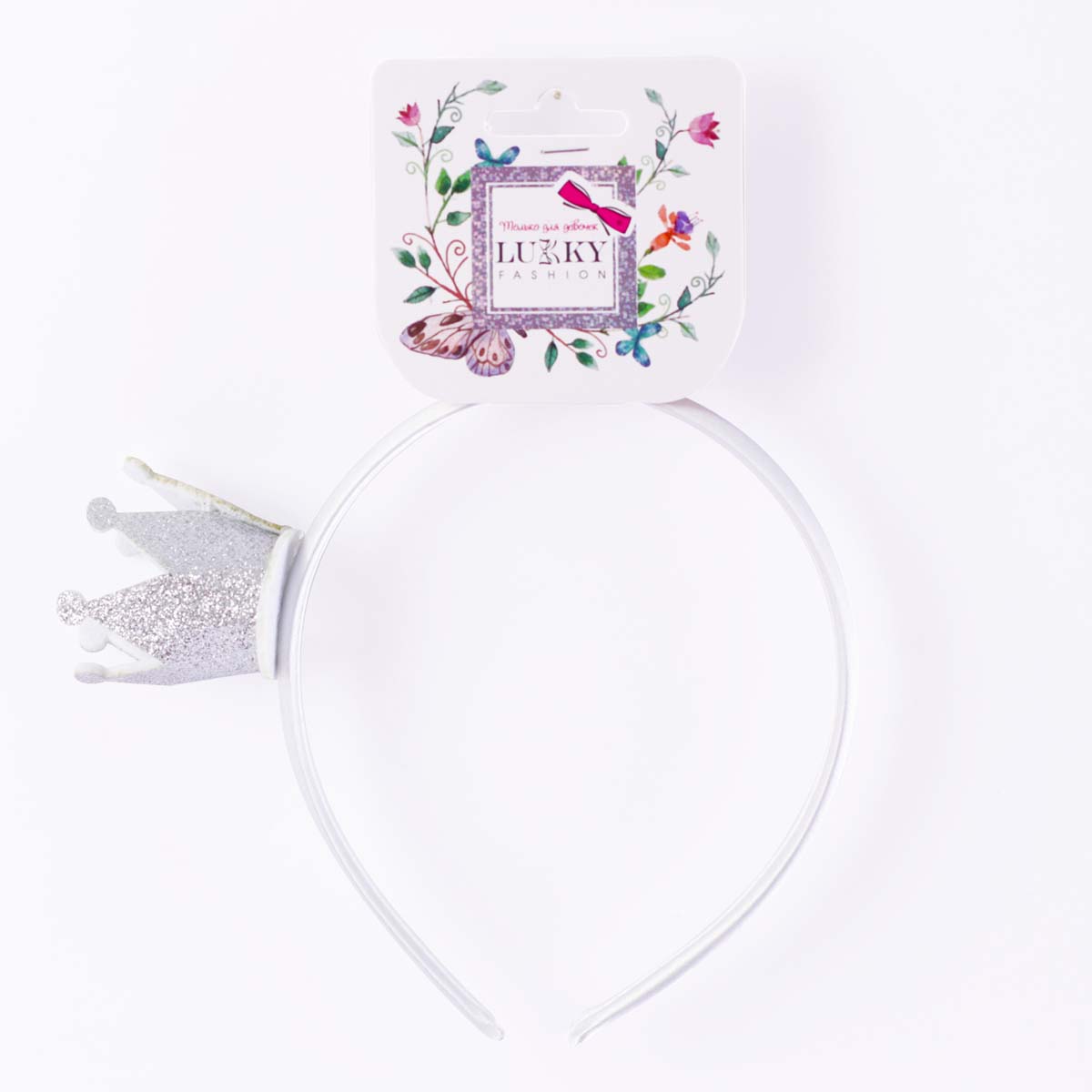 Обруч для волосся Lukky T18557. Він оздоблений мініатюрною грайливою короною, щоб кожна дівчинка відчула себе справжньою прицесою. Матеріал - полімери.