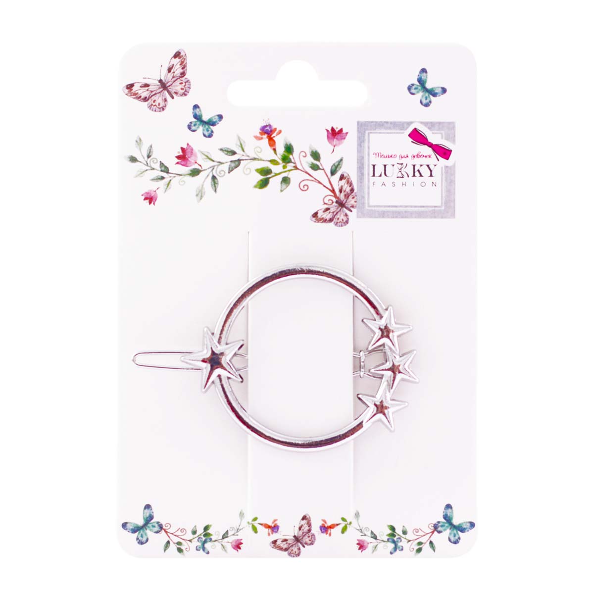 Шпилька для волосся Lukky T18576. Вишукану заколку у формі простого кільця з зірочками оцінять дівчатка, які полюбляють мінімалістичні прикраси. Матеріал: метал