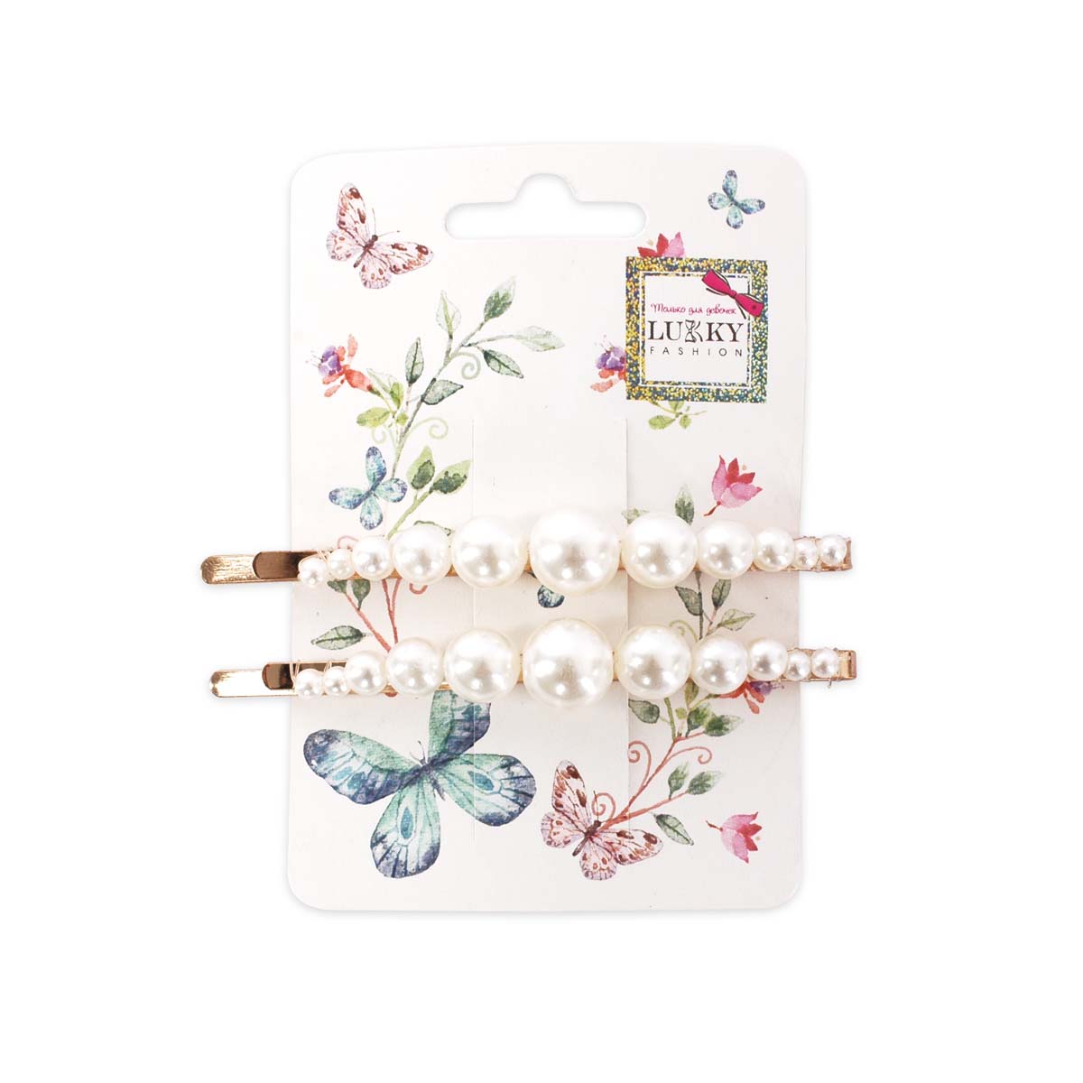 Шпильки для волосся 2 шт Lukky T19587. Набір двох класичних невидимок, які оздоблені штучними перлинками, стануть окрасою кожної зачіски! В наборі 2 заколки. Матеріал: полімерні елементи, метал