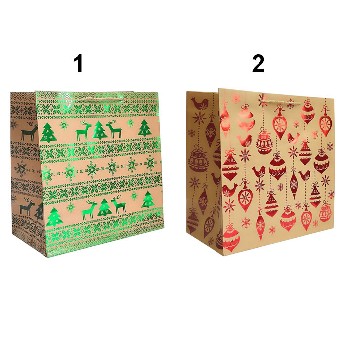 Подарунковий пакет стане яскравим акцентом на святковий подарунок. Елегантний дизайн із орнаментом створює атмосферу новорічного затишку та радості. Міцний матеріал забезпечує акуратний вигляд та надійність при перенесенні. Зручні ручки роблять використання комфортним, а пакет ідеально підходить для подарунків будь-якого розміру.