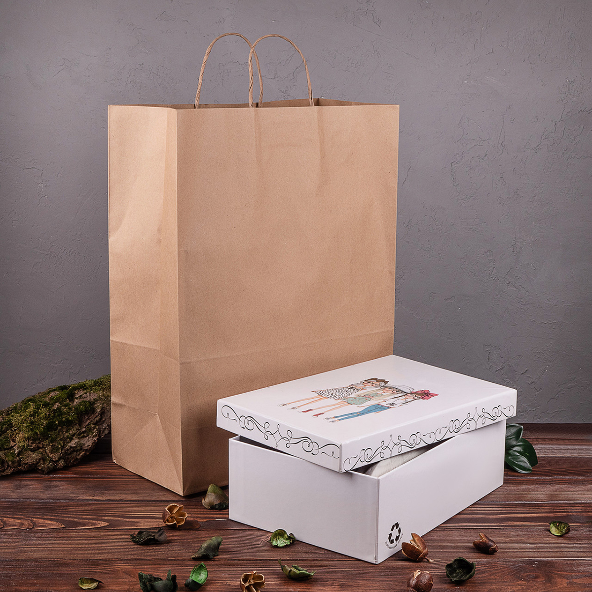 Пакет крафтовий коричневий - однотонний паперовий пакет з крученими паперовими ручками. Якісний класичний пакет з крафт-паперу - відмінне рішення для упаковки подарунків і повсякденного використання. Така упаковка з щільною фактурою паперу дозволить зручно розмістити ваші товари і красиво піднести подарунок.