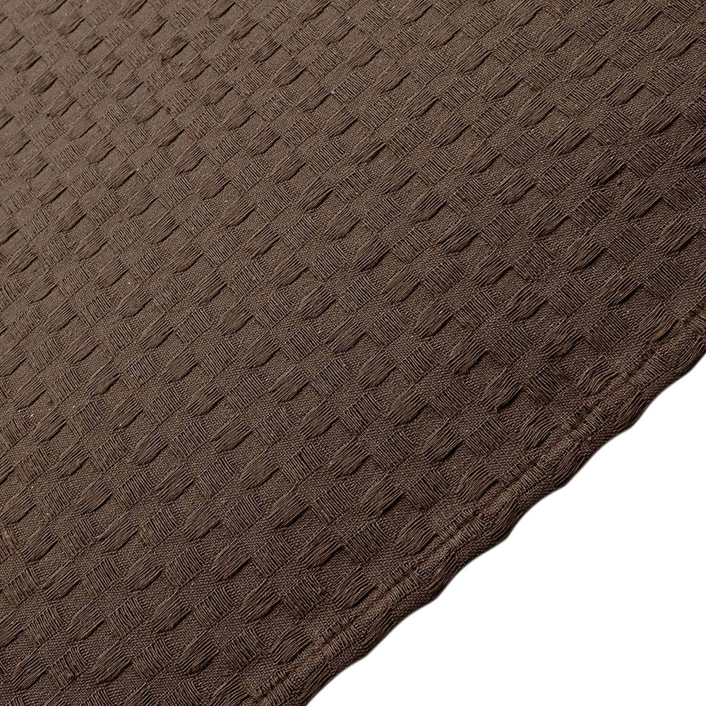 Однотонне простирадло коричневого кольору. Простирадло виконано з натуральної бавовняної тканини з рельєфною вафельною фактурою. Матеріал легкий і приємний на дотик, відмінно пропускає повітря, забезпечує відчуття затишку і комфорту. Простирадло можна використовувати як літню ковдру або плед, а також для походів у сауну або СПА.