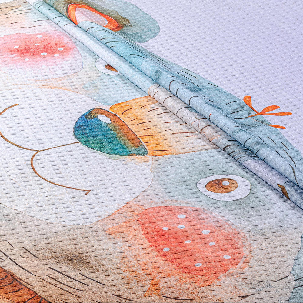 Вафельне простирадло із симпатичним принтом із ведмежам. Простирадло виконано з натуральної бавовняної тканини з рельєфною вафельною фактурою. Матеріал легкий і приємний на дотик, відмінно пропускає повітря, забезпечує відчуття затишку і комфорту. Принт, створений з використанням технології цифрового друку, зберігає насиченість кольорів навіть після безлічі прань. Простирадло можна використовувати як літню ковдру або плед.
