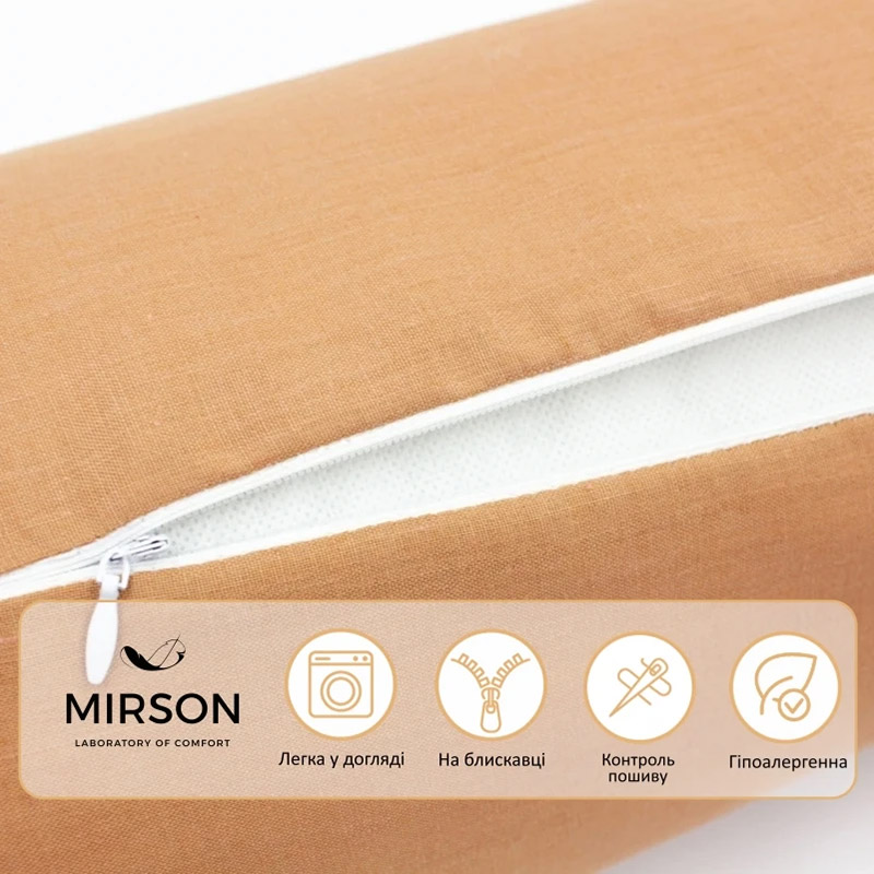 Подушки-валики з наповнювачем із волокна ecosilk від української ТМ MirSon. Вироби комфортні, дарують здоровий сон і відпочинок. Подушки добре зберігають форму, порадують гарним дизайном і добротним пошиттям. Подушки MIRSON виготовляються за високими стандартами якості із застосуванням сучасного обладнання. Ретельно підібрані наповнювачі, тканини і складові допомагають виробляти вироби високої якості.